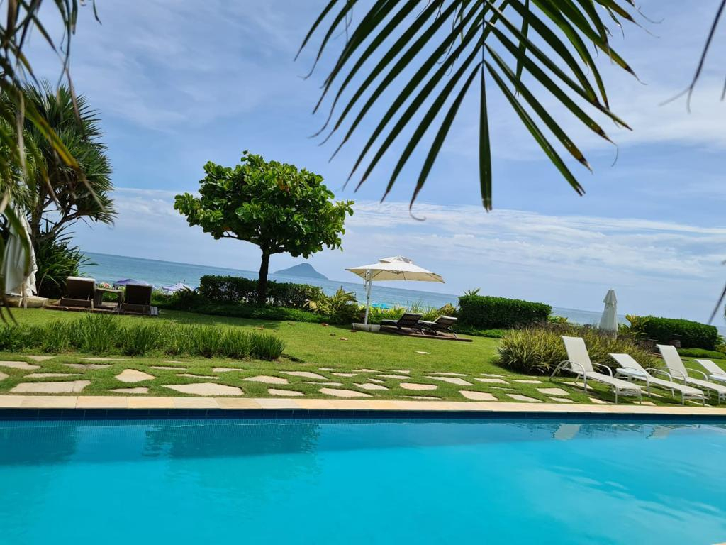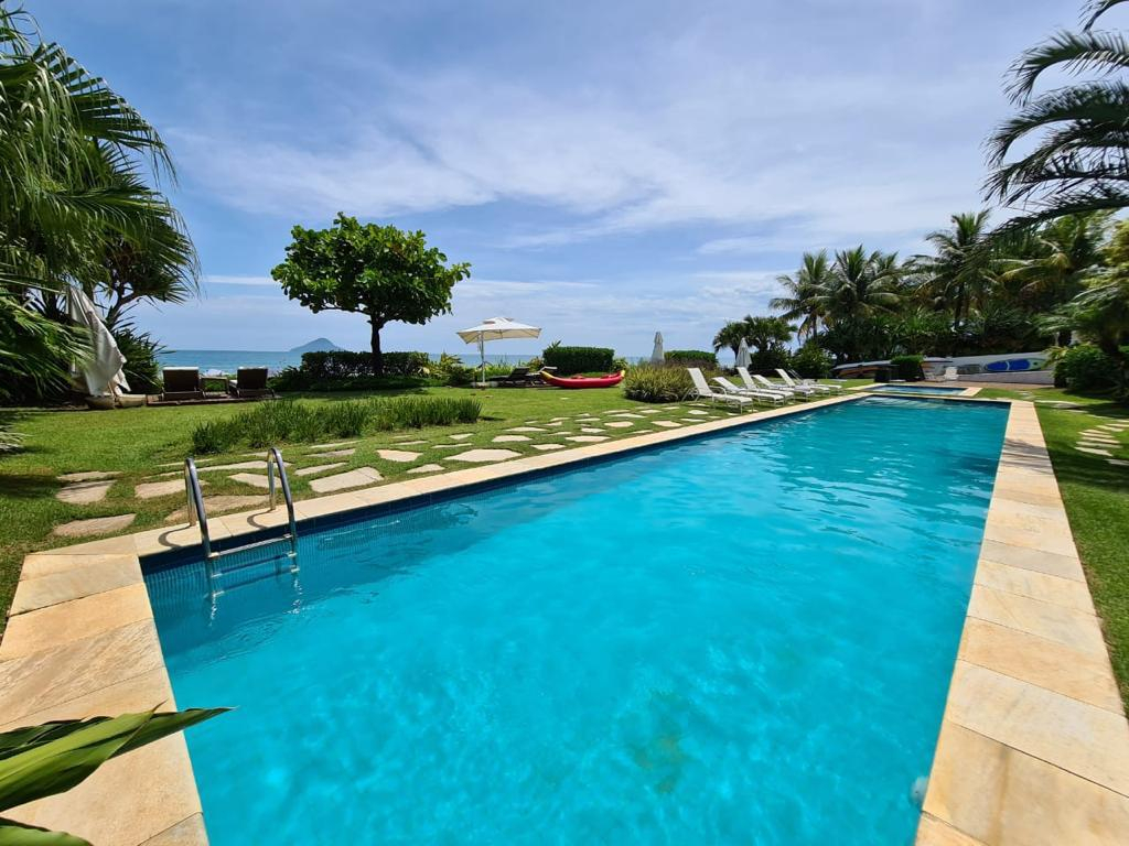 🏊 Piscina com deck e gramado de frente para o mar