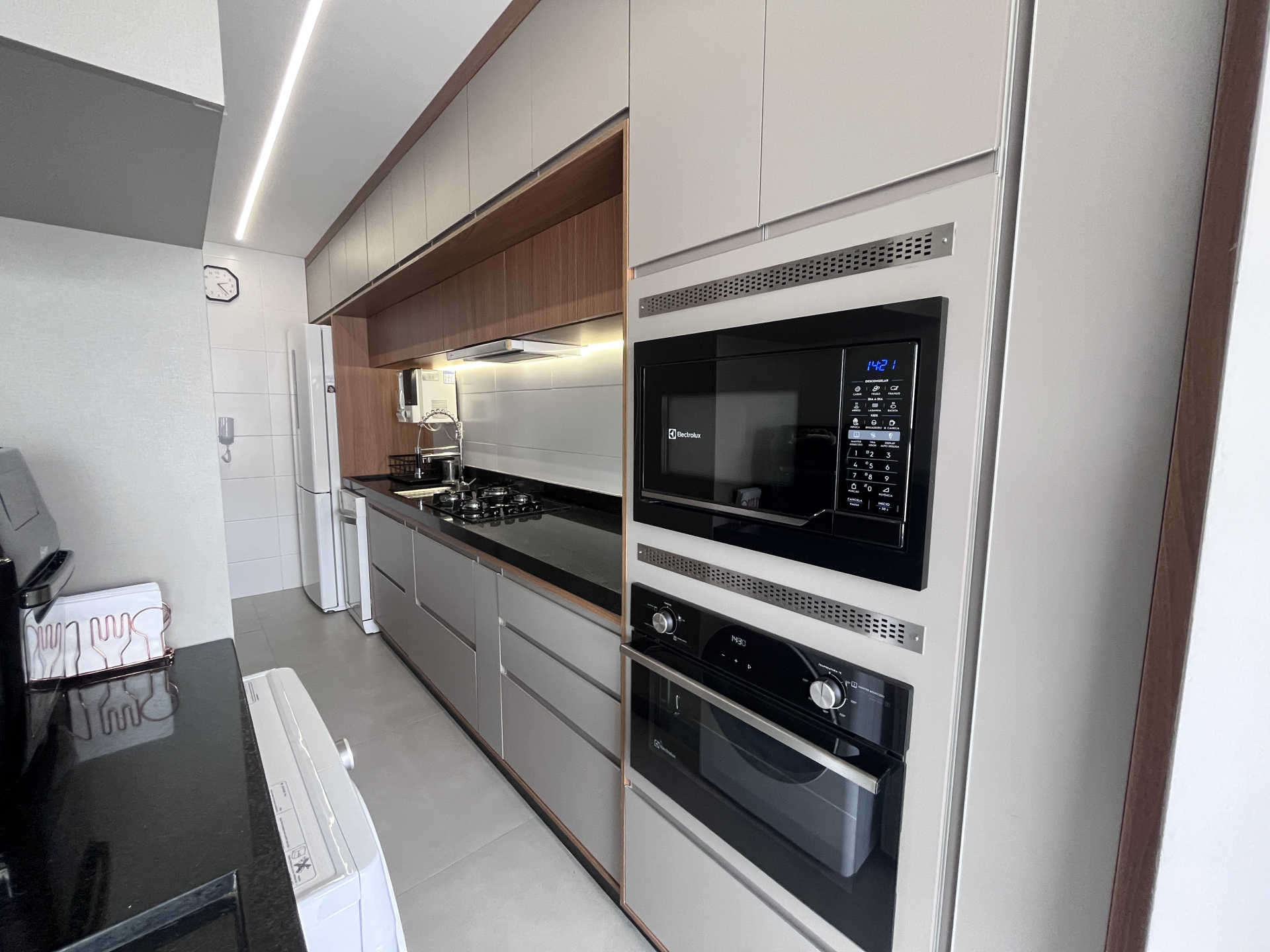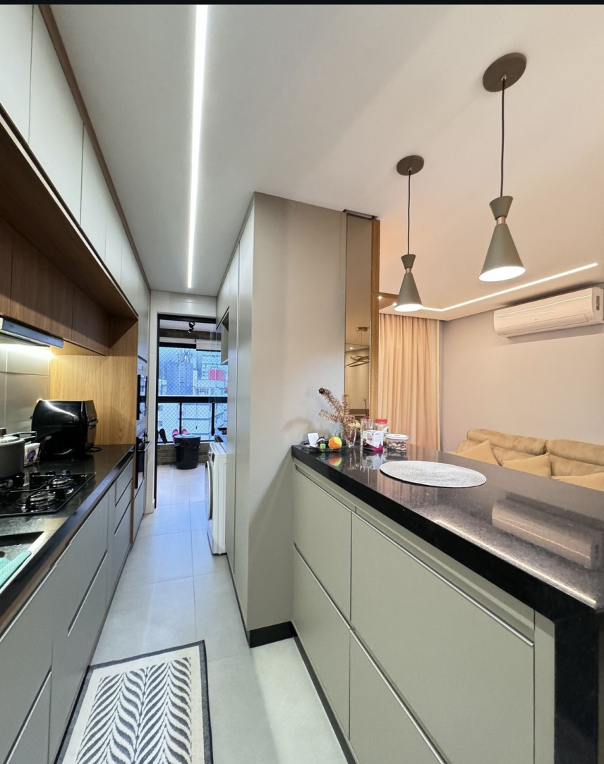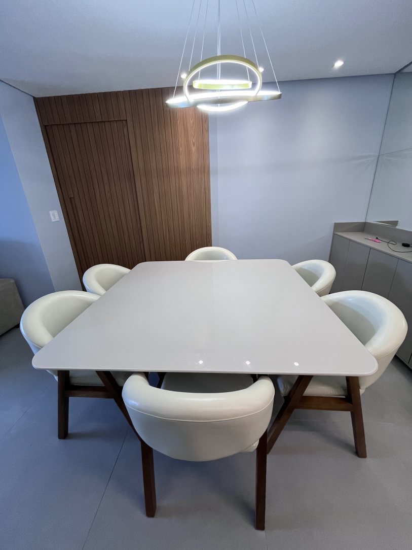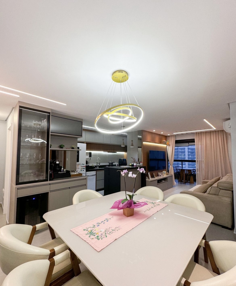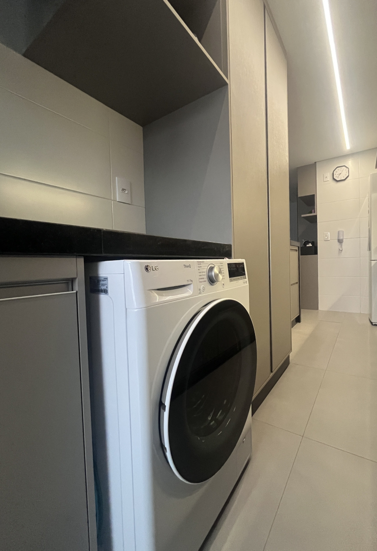A sala, espaçosa e iluminada, integra-se harmoniosamente à cozinha moderna e à área de serviço completa, formando um ambiente sofisticado, funcional e pensado para quem valoriza praticidade no dia a dia sem abrir mão do bom gosto. Cada detalhe da decoração foi planejado para transmitir aconchego e elegância — um imóvel realmente diferenciado e pronto para morar.